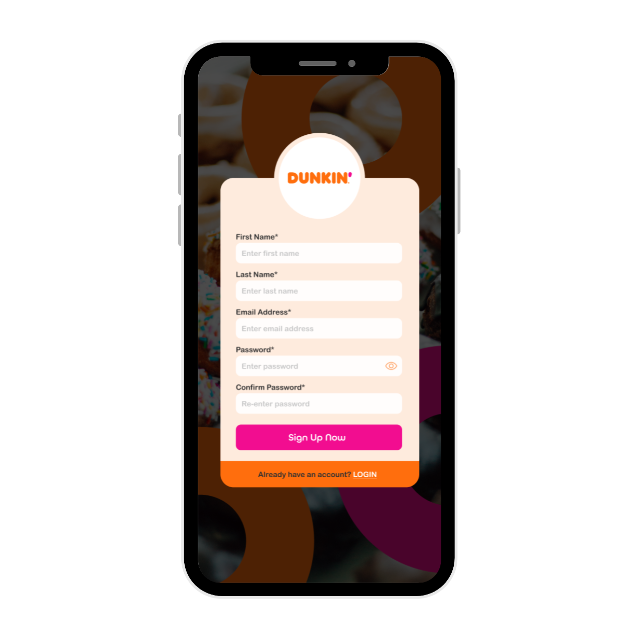 This is an abstract design approach to reimagine the onboarding experience for a popular brand, Dunkin’. The primary goal was to bring excitement and joy to the initial login and signup process for a world-renowned company.