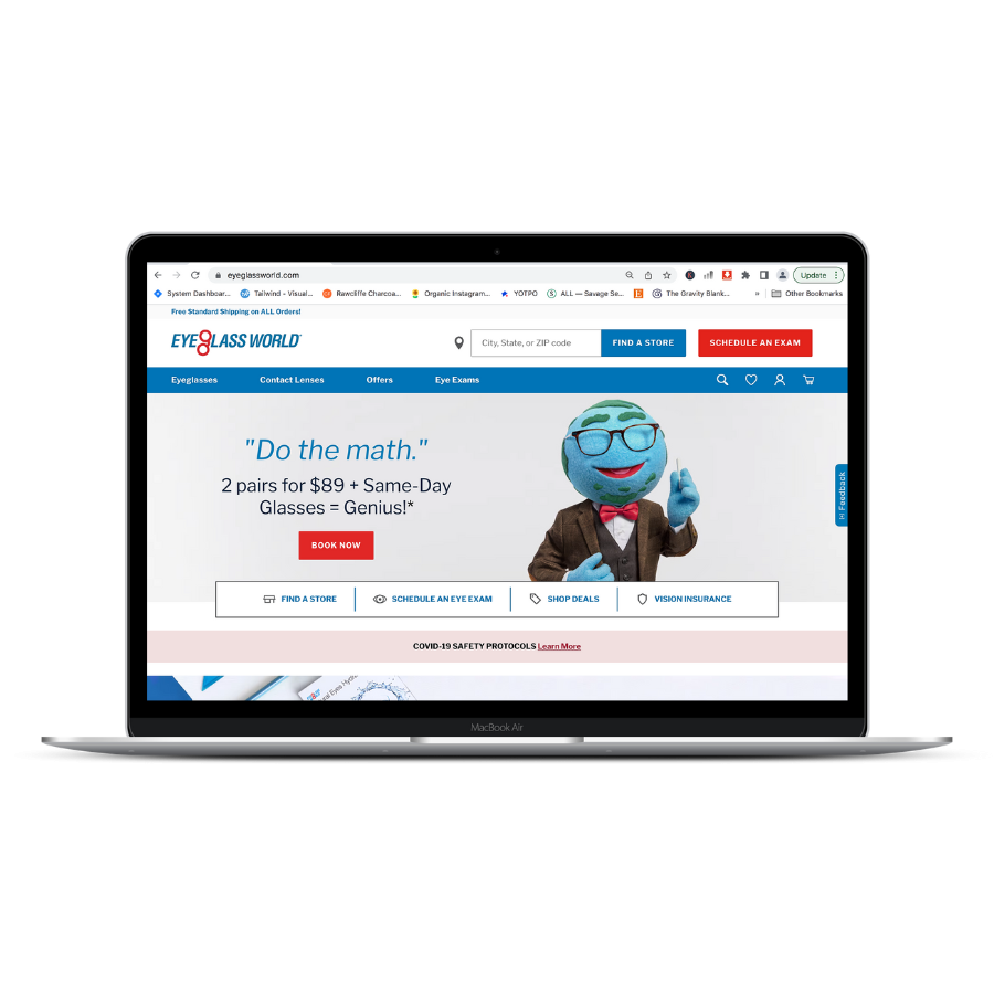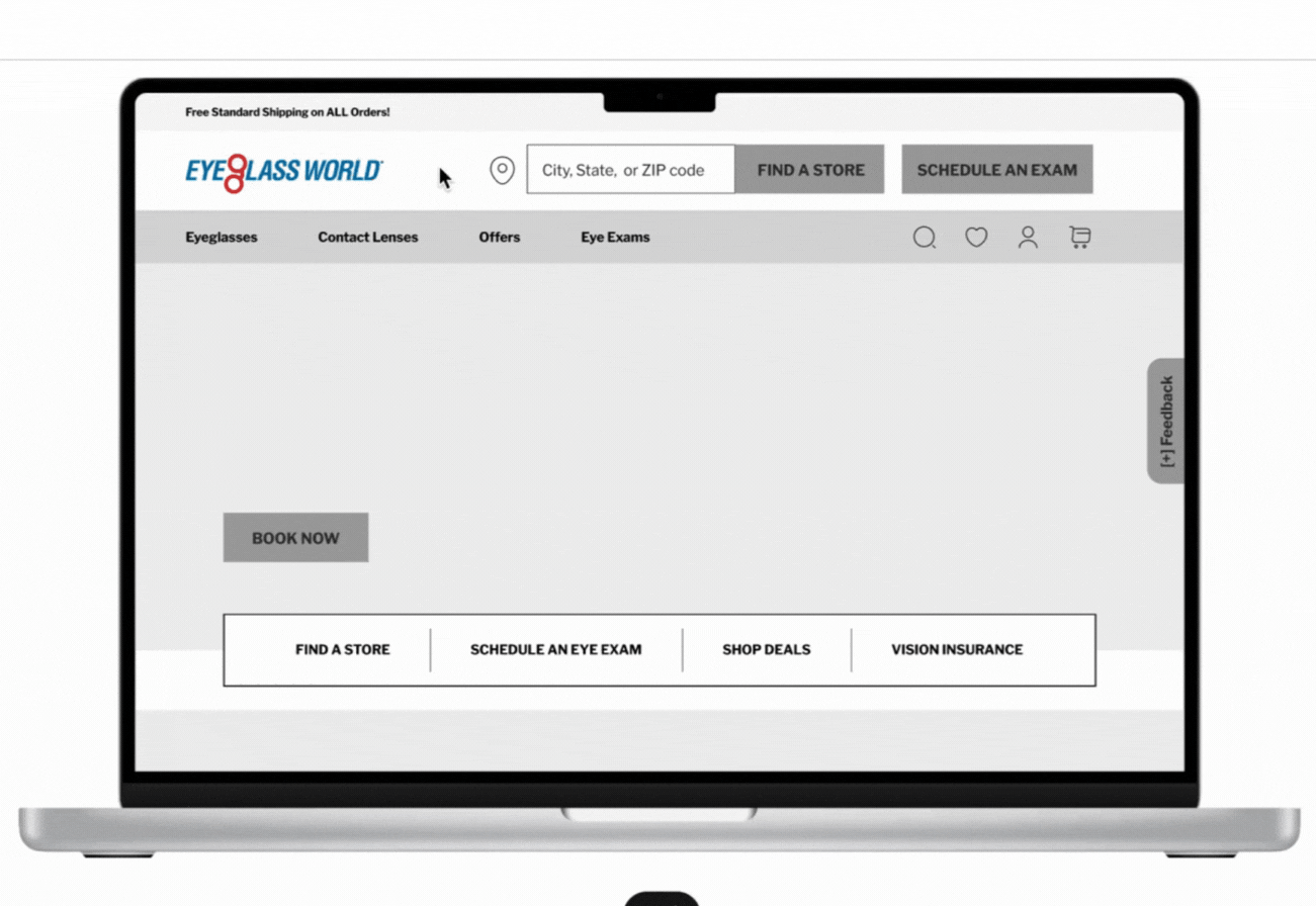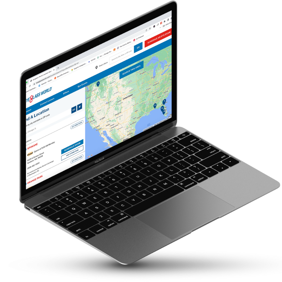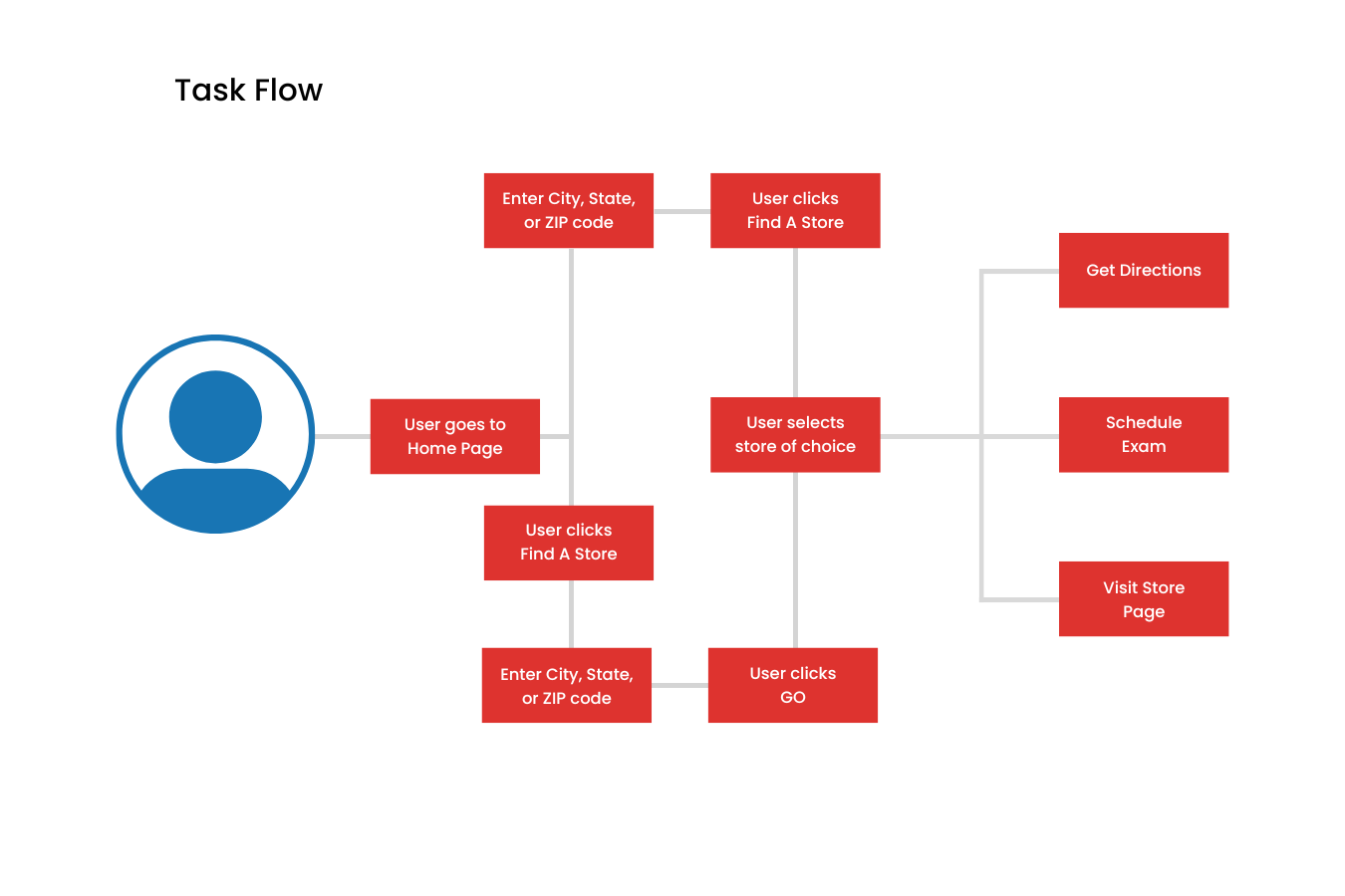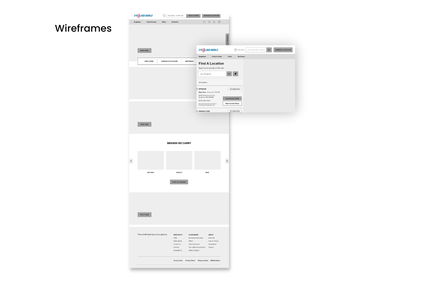 Eyeglass World is a retail chain specializing in eyewear and eye care services. It is one of the brands operated by National Vision, Inc. The strategy behind this project was to design a simple, intuitive user flow that would allow users to start on the home page and land on the following pages, Get Directions, Schedule Exam, or Visit a Store Page.