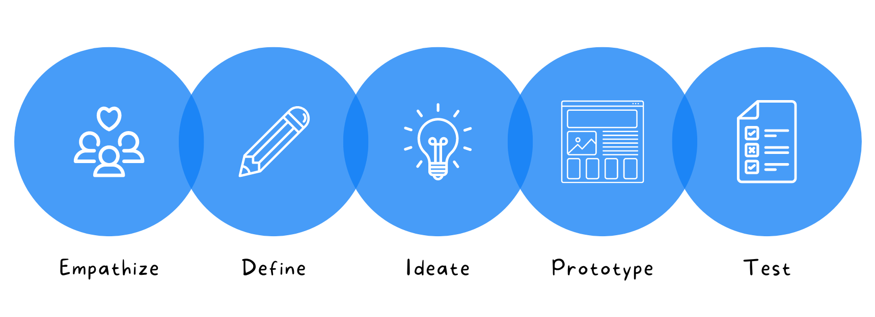 It was important in this stage to define clearly, the challenges ahead, the potential users, and what we wanted to accomplish with the design. To narrow down the best solutions and deliver a creative and simple solution to this problem, I used Design Thinking; a process based on user-centered solutions that are divided into 5 steps: empathize, define, ideate, prototype, and test.