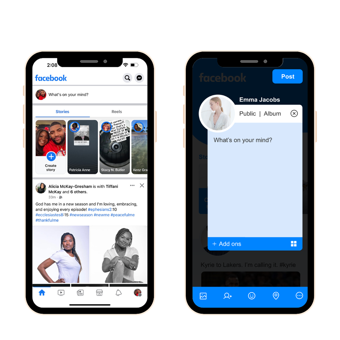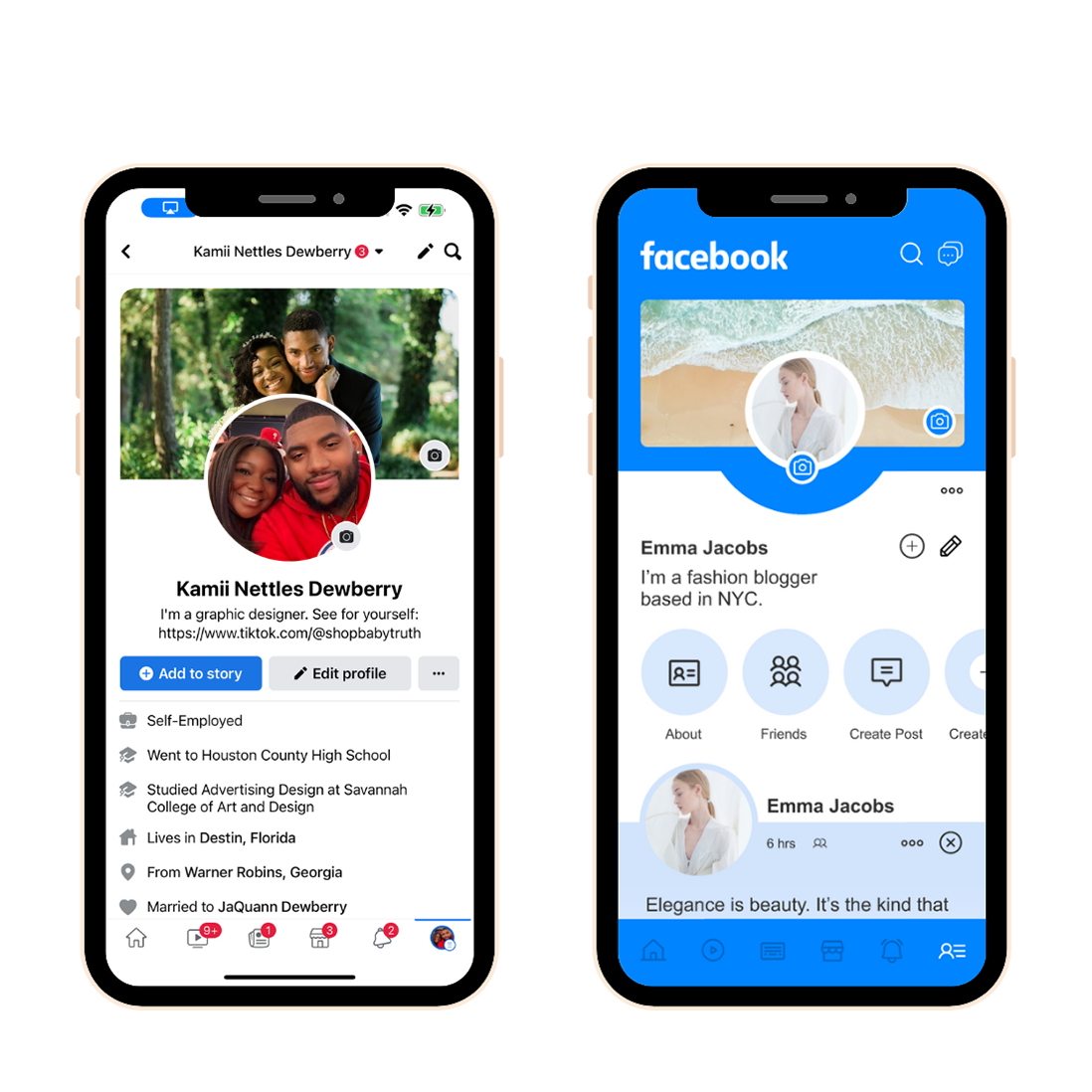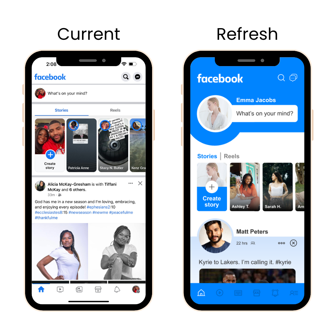 In Facebook stories, I updated the names to include a first name, and last initial so that it doesn’t look too cluttered. Finally, I added some more blue since that is Facebook’s brand color!