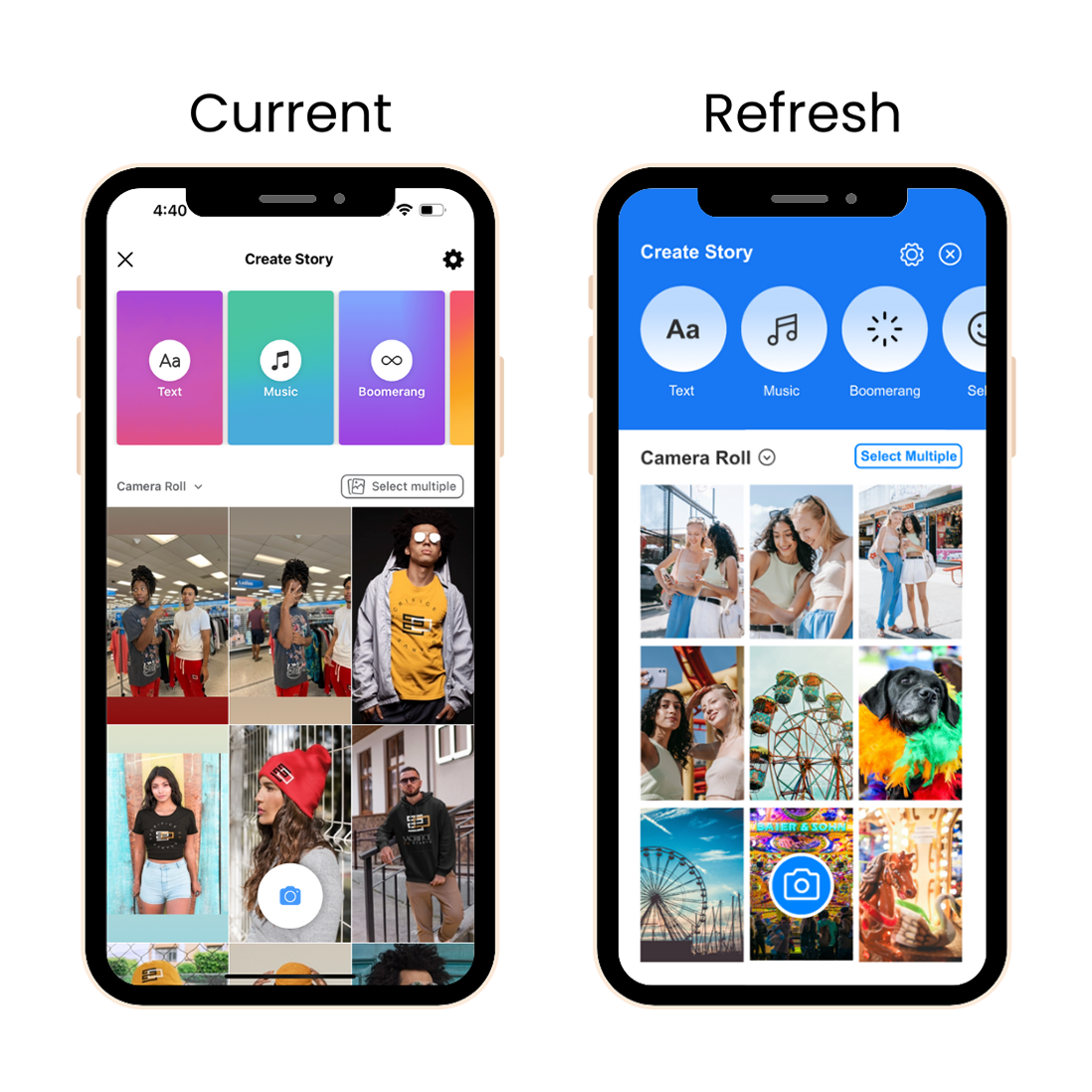 Also, I noticed that Facebook typically places their close/exit button (x) on the top right. However, in the “create story” section they decided to switch it to the left side. This hurts the user’s experience, so, I switched it back over so that it looks more coherent with the rest of your app.