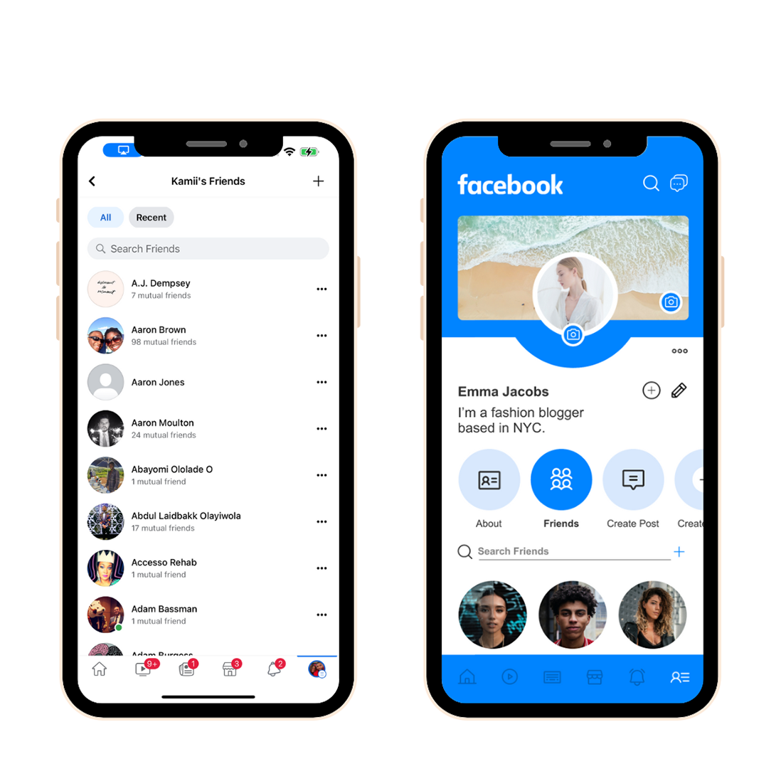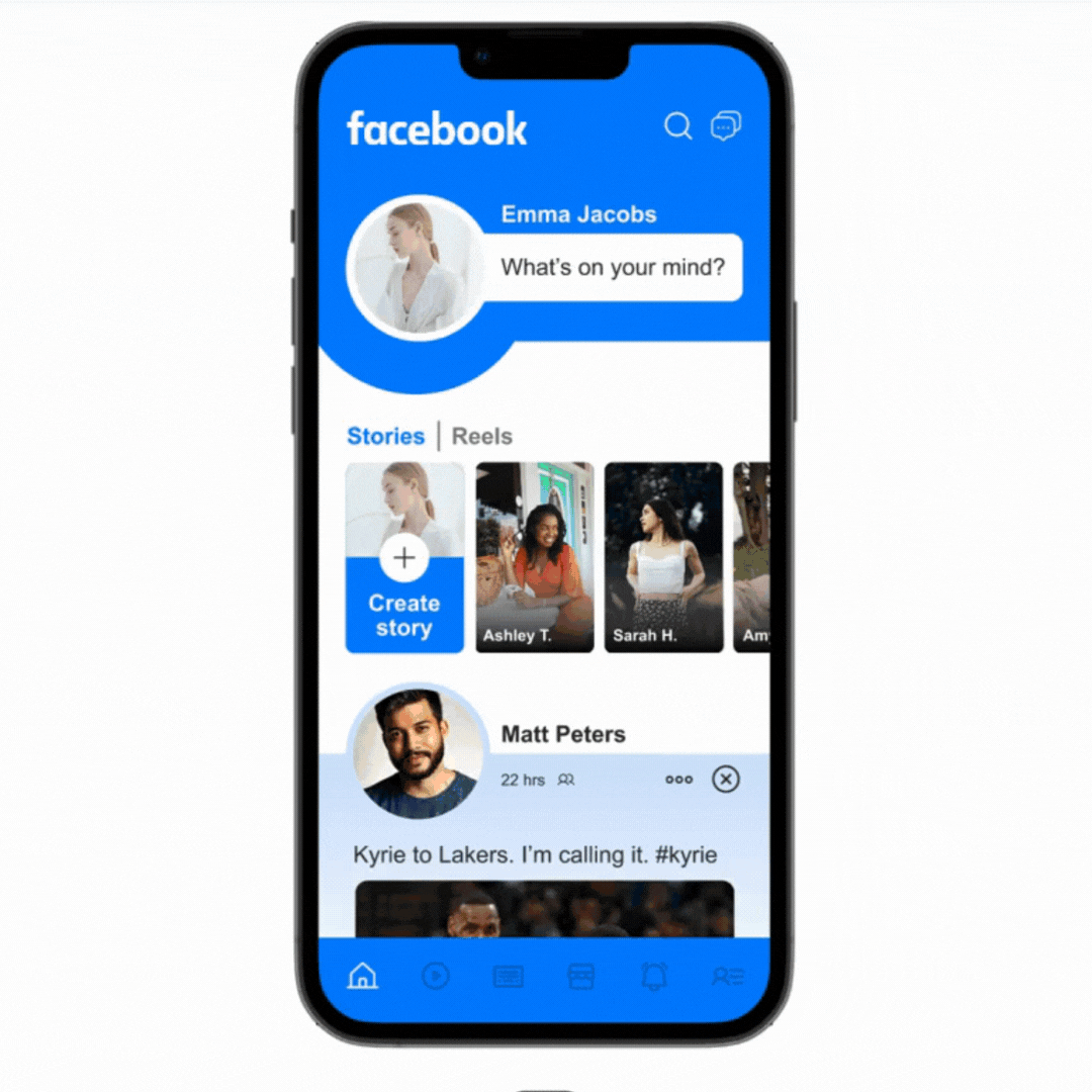 I’m no longer impressed with the Facebook app. Its design is a bit stale and boring, “meh”, frankly. Here is my attempt to give it a facelift to make it more beautiful, yet simple looking and easy to use.