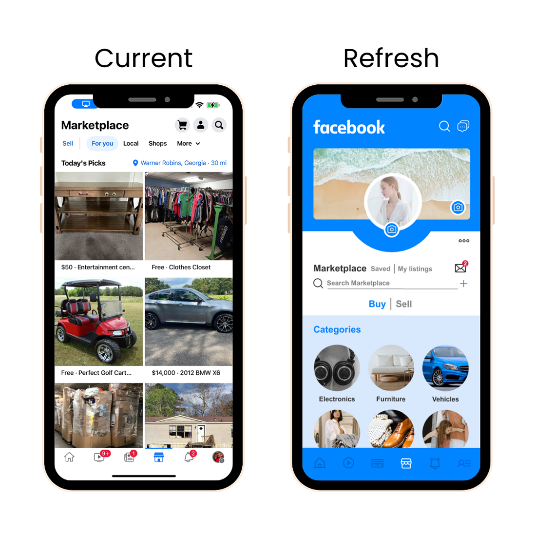 The marketplace has to be one of the most inconvenienced shopping experiences. An easy way to clean up this page is by listing items under categories. I believe having the option to toggle back and forth between Buy or Sell is a great feature to have along with access to your messages about inquiries.