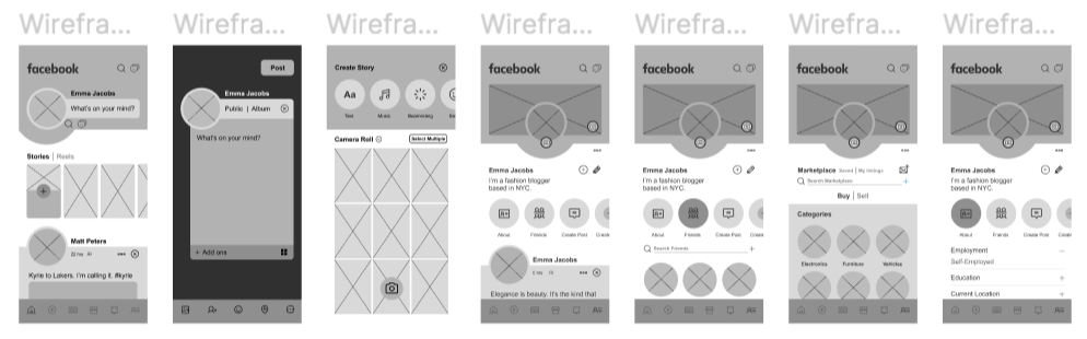 Below are the Low Fidelity Wireframe screens after testing and iteration.