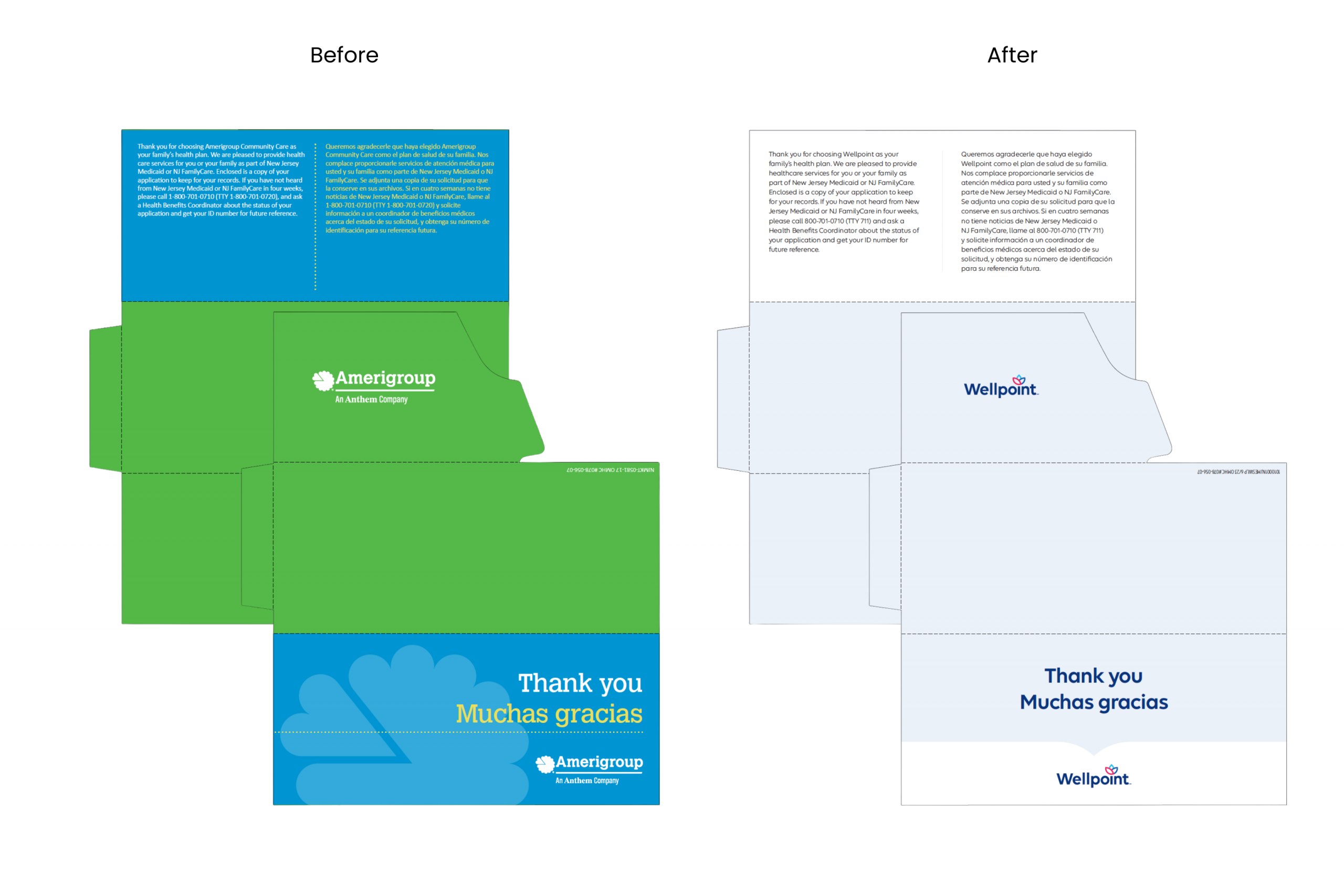 Helped streamline member onboarding during the Wellpoint rebrand by designing clear, accessible materials that reduced confusion and supported self-service—minimizing call center dependency.