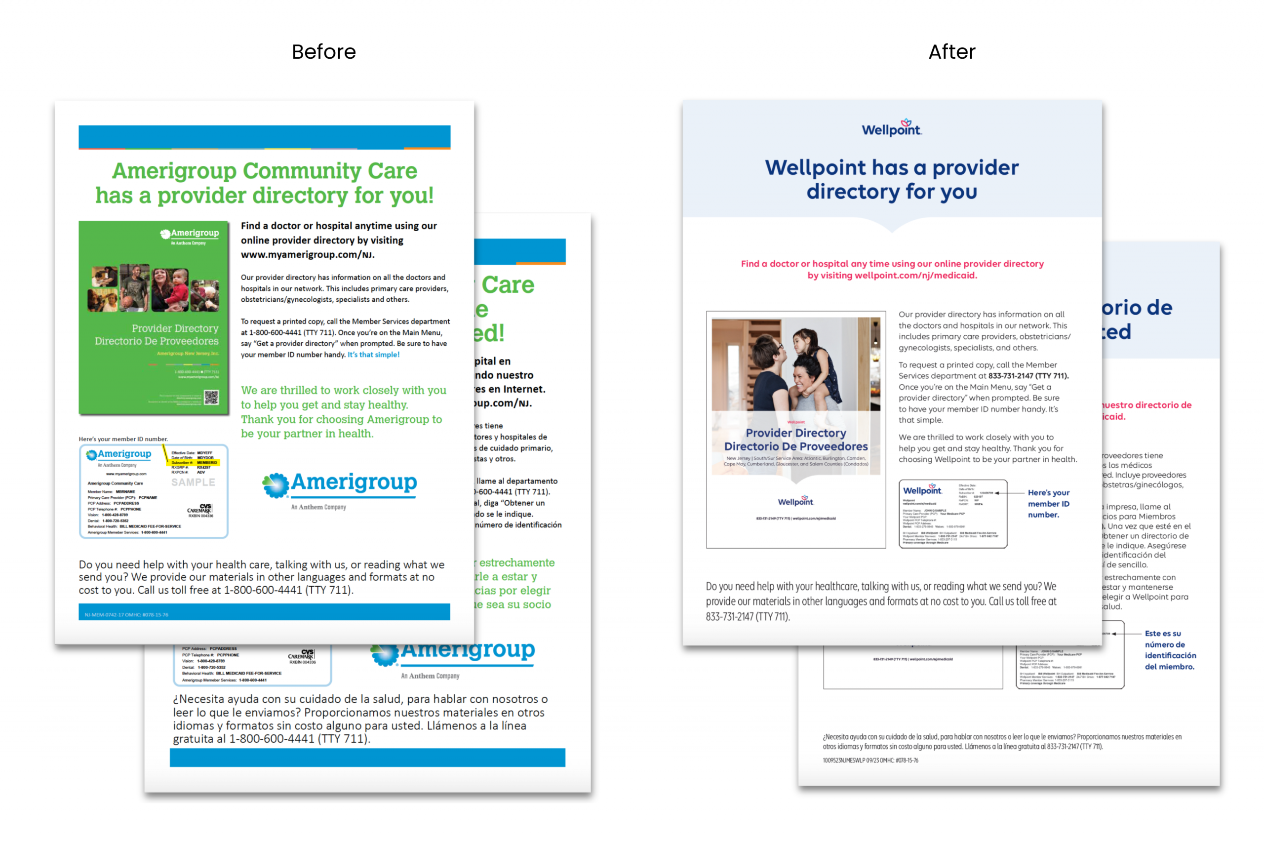 Supported a smoother onboarding experience during the Wellpoint rebrand by delivering clear, member-focused materials that reduced confusion and helped lower call center traffic.