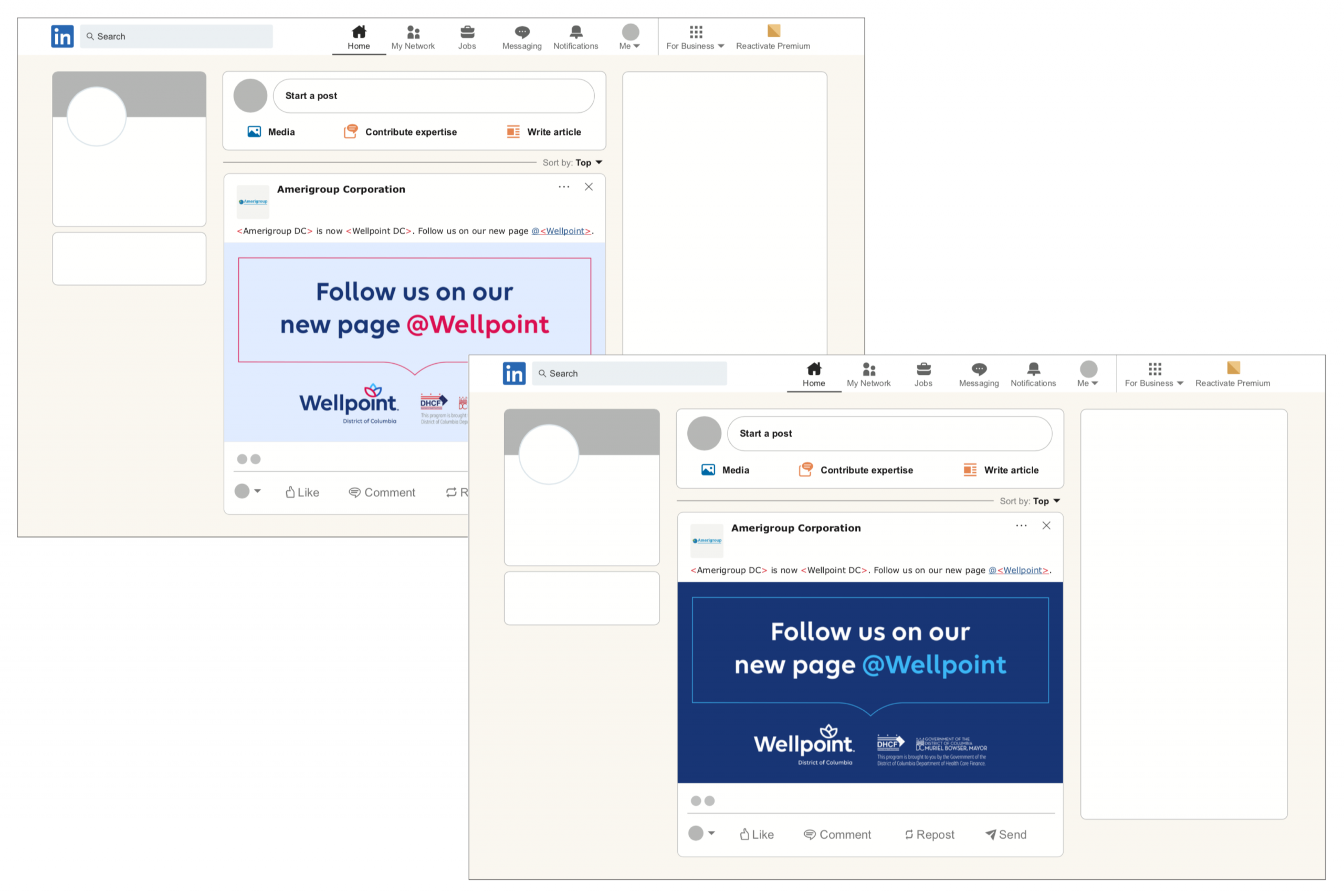 To expand visibility and engagement, I extended the Wellpoint identity into digital platforms. I created social graphics, web banners, presentations and email templates that reflected the refreshed brand while meeting the content needs of Medicaid members online.