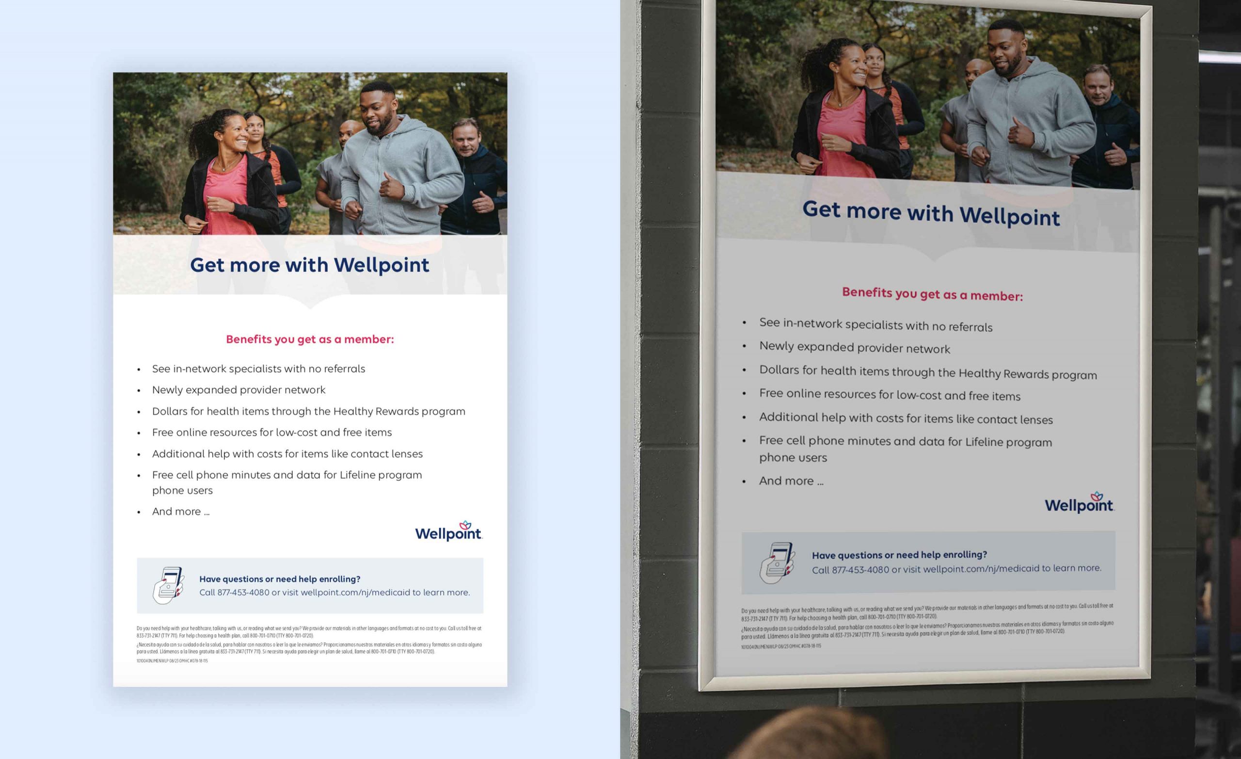 To introduce the Wellpoint brand to the public, I led the creative development of a large-scale NJ Transit bus wrap. This moving billboard brought Wellpoint’s new identity into high-traffic urban areas, helping raise brand awareness among millions of Medicaid members and the general public. I worked closely with brand and compliance teams to ensure the design met visibility, messaging, and legal requirements while remaining clear and impactful in motion.
